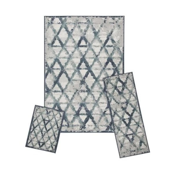 Capri 3 Piece Rug Set This Capri 3-Piece Rug Set includes an area rug. runner and mat. Produced with warm. deep colors. it features a rich and classic design. It will create an elegant look with timeless style and beauty for your home or office. This coordinating set is versatile and will enhance and protect the natural beauty of your wood and tile floors. To care for you rug treat it as you would any fine carpet by vacuuming regularly and spot cleaning when necessary. This area is rug set has a durable. anti-static. soft pile and is naturally resistant to stains. fading. soil and bacteria. Features3 Piece Capri Area Rug Set ContainsMade of 100% Heavy DutySolution Dyed Polyolefin YarnSpecificationsColor: Rizzy BlueArea Rug Size: 5' x 7'Matching Runner Size: 22" x 59"Mat Size: 22"x 31"Weight: 14 lbs