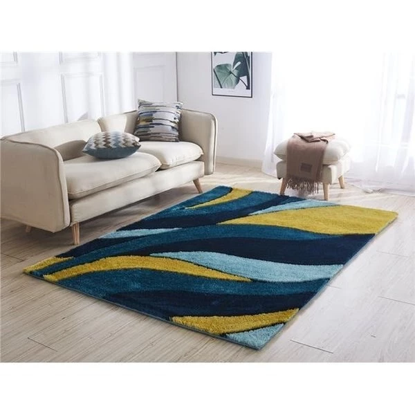 Aria Collection Soft Pile Shag Area Rug. Hand Tufted. 100% Polyester with cotton backing. Luxurious and plush. the shag rug provides an incredibly soft feeling underfoot. Scratch resistant on hardwood floors. Vacuum regularly. For minor spills. spot clean with a mild detergent using a wet cloth or paper towel. One year limited manufacturer warranty. SpecificationsCollection: AriaColor: Yellow & BlueMaterial: 100% Polyester with Cotton BackingDimension: 1" H x 2' W x 3' LWeight: 7 lbs