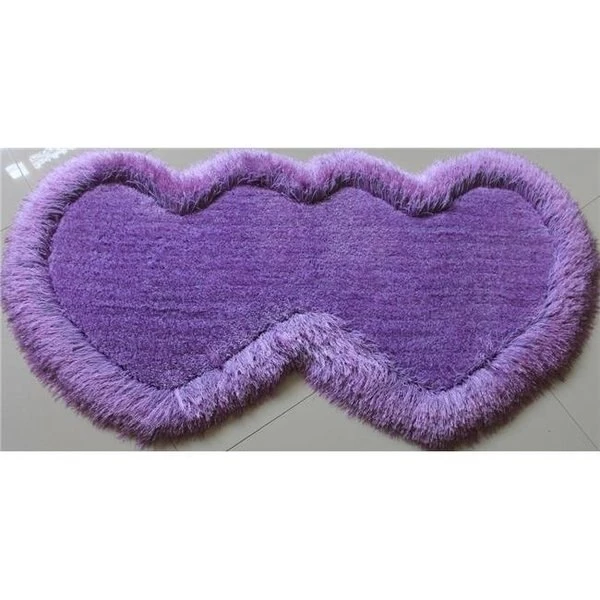 FeaturesLavender Color Double Heart Shape Shage Area RugHand tufted and extra soft100% Polyester with cotton backingScratch resistant on hardwood floorsVacuum regularlyFor minor spills. spot clean with a mild detergent using a wet cloth or paper towelOne Year Limited Manufacturer WarrantySpecificationsSize: 28 in. x 55 in.Tickness: 4 in.Color: LavenderShape: Double HeartConstruction: Hand TuftedWeight: 7 lbs