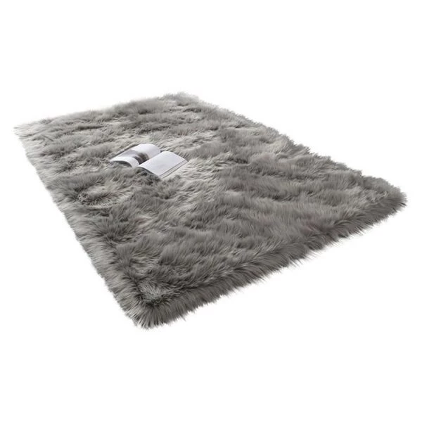 Cozy Collection ultra soft fluffy faux fur sheepskin area rug. Bring a touch of the natural. silken beauty to your contemporary living space with this luxury sheepskin faux fur rectangular area rug. The soft pile area rug features a densely woven. plush front that replicates the look and feel of sheepskin fur for exceptional underfoot comfort. The area rug has artificial leather backing and is scratch-resistant on hardwood floors. The 100% polypropylene construction makes this rug naturally stain-resistant. and the highly-saturated color palette increases the style quotient in any living space. For minor spills. spot clean with a mild detergent using a wet cloth or paper towel. One Year Limited Manufacturer Warranty. SpecificationsColor: Light GrayCollection: CozyMaterial: PolyesterStyle: ContemporaryDimension: 60" x 84" x 3.5"Weight: 7 lbs