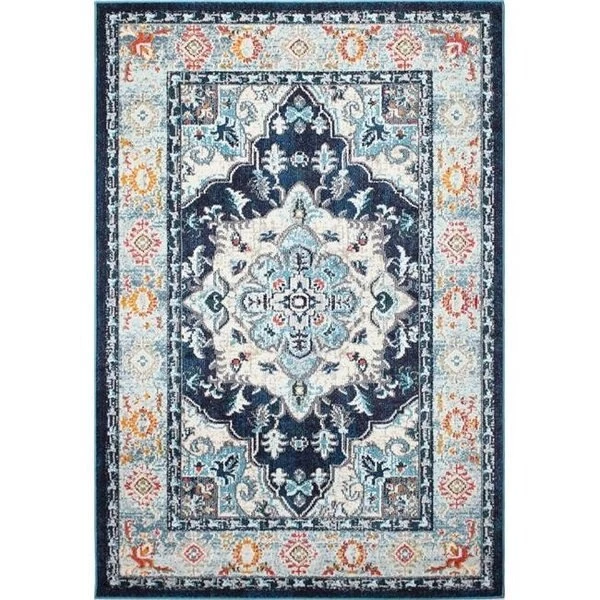 Richly detailed designs in distressed looks. are accentuated with vibrant colors I nthis beautiful collection of unique patterns. Subtle heathering on a silky smooth pile adds another level of sophistication. SpecificationsCollection DakotaColor: NavySize: 7' 6" x 9' 6"Style: TransitionalPattern: GeometricContent: PolypropyleneConstruction: Power LoomWeight: 35 lbs