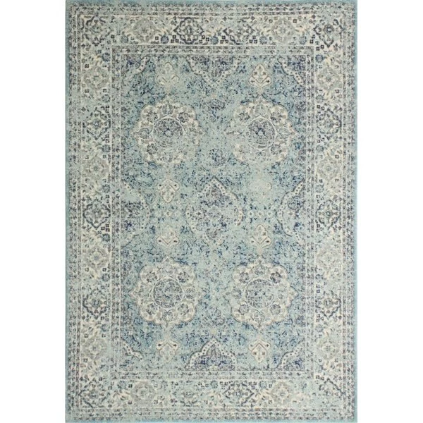 Serenity awaits as you immerse yourself in these soft. tranquil designs. Subtle striations with hints of pattern provide an updated distressed look in today's colors. SpecificationsCollection EverekColor: AquaSize: 2' 6" x 8'Style: TransitionalPattern: Floral. OrientalContent: PolypropyleneConstruction: Machine MadeWeight: 10 lbs