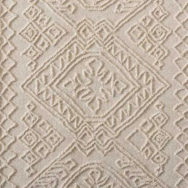 Refresh the interior of your home with the contemporary design of the Linwood rug. Hand tufted in India, this rug is comprised of wool. Raised threads create a pattern of diamond-like shapes across the rug which are filled with smaller, more intricate designs. The ivory hues of the rug brilliantly capture light for a clean, contemporary look that brightens any room. An eye-catching expression of modern design, the Linwood rug adds an elegant touch to any space.