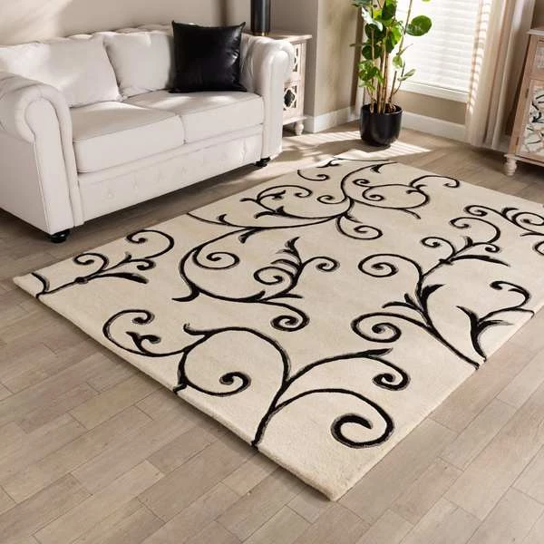 Baxton Studio Trellis Modern and Contemporary Ivory and Black Hand-Tufted Wool Blend Area Rug