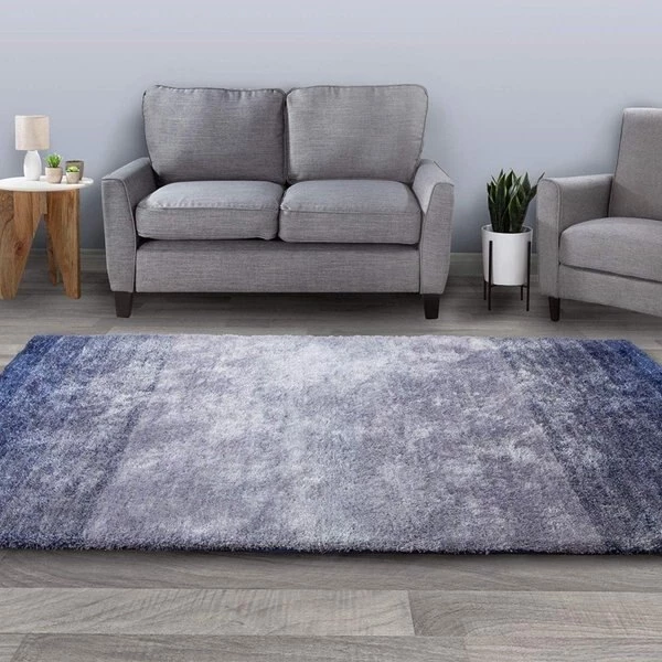 Add warmth and style to any room from the ground up with a shag area rug by Bedford Home. The gradual blending of the ombre blue hues from light to dark combined with the plush shag texture provides softness underfoot and a touch of luxury to any home. Made of polyester. the fluffy carpet piece will naturally resist fading while providing the perfect accent under a dining room table. on top of hardwood floors in the living room or next to your bed for when you wake in the morning the possibilities are endless. SpecificationsColor: BlueMaterial: PolyesterDesign: OmbreSize: 5 ft. 3 in. x 7 ft. 7 in.Weight: 25.88 lbs