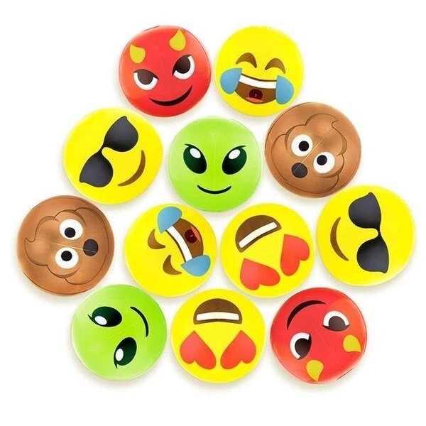 Whether you're planning a trip to the beach. a day at the lakes. or enjoying the pool in your own back yard. these emoji beach balls will keep you entertained for hours! Each with a variety of emoticon facial expressions. These fun faces have a standard air sprout. making them easy to inflate by mouth. hand pump or pressure pump. FeaturesSure to be a crowd pleaser for party favors. gifts. summer camps. or vacationsPack of 12Includes2 Sunglasses emojis2 Cry laugh emojis2 Heart eyes emojis2 Devil emojis2 Poo emojis2 Alien emojisSpecificationsSize: 12"Weight: 0.8 lbs