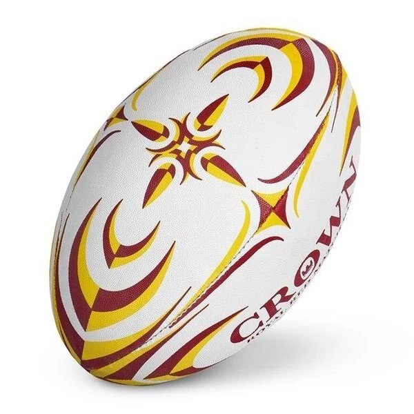The game of Rugby is one of the most time honored sporting traditions since its inception in early 19th century England. The game has evolved to become the second most popular sport in the world with nearly 4 billion people tuning in to watch the 2011 World Cup matches. The sport has gained more popularity in the United States with club leagues running nationwide in communities and college campuses. Now you can honor and celebrate this beautiful sport with this Royal Red Match Ball from Crown Sporting Goods. The Red and Yellow design evokes the most feared rugby team in the world and illustrates a crescent and teardrop pattern. Your opponents will know you mean business when you bring this ball to the match! SpecificationsColor: Royal RedWeight: 1 lbs