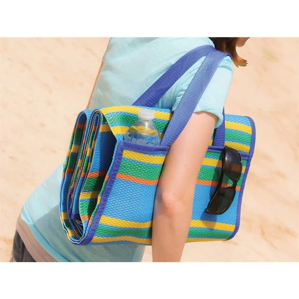 HANDY MAT W/STRAP, BLUE/GREEN STRIPES, 60INX78IN, BILINGUAL