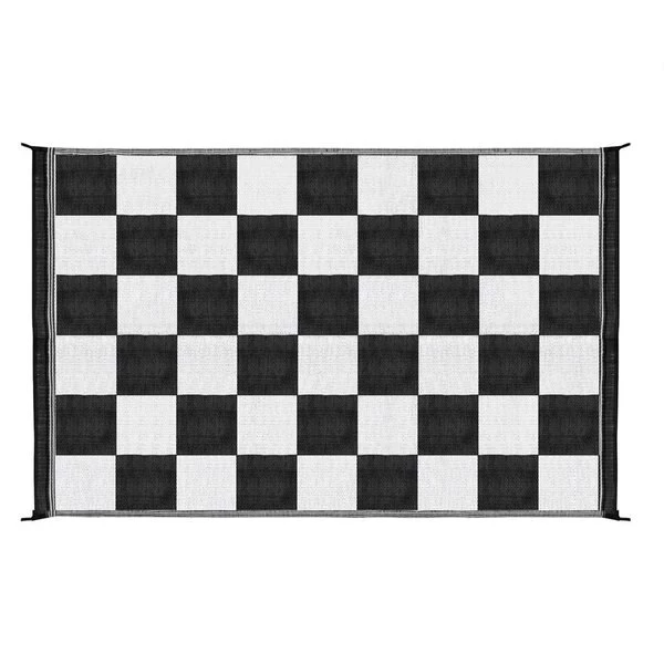 OUTDOOR MAT, 6FT X 9FT, BLACK/WHITE CHECKERED