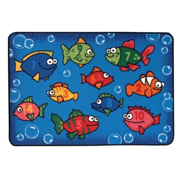 KID$ Value Line is designed to stimulate a child’s imagination through a variety of designs created for use in small play areas. Proudly made in the USA. you can be assured that our products are safe for your room; constructed with attention to detail and quality.FeaturesSkid-Resistant Backing (includes latex)Carpet Stain ProtectionMachine Washable – Cold water with mild detergent.Gentle cycle.Line dry. Do Not Bleach.Made with recyclable nylon fiberPasses CPSC FF1-70. Standard for the Surface Flammability of Carpets and RugsType – Fishy RugShape – Rectangle