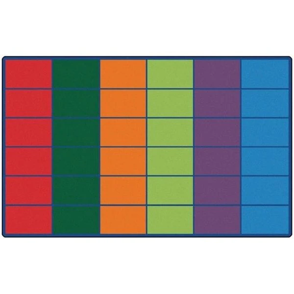 Teachers looking for an extra large classroom seating rug that maximizes the student's sitting area will love this seating rugFeaturesAntimicrobial and Carpet Guard treatmentTreated with "Carpet Guard" chemistry which provides soil and stain protectionKidPly Backing SystemDouble-stitched edgesEco-friendly. RecycleableMaterial – 100% Commercial grade nylon face yarnType – Colorful Rows Seating RugShape – RectangleSeat 36Size – 6 X 9 ft.