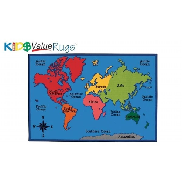 FeaturesKids Value RugDesign – World MapSkid-Resistant BackingMachine WashableSoil ResistantItem Weight – 12 oz.