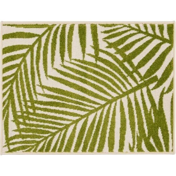 Transform your back deck. den. or bedroom into a tropical oasis with this bright. durable area rug. Featuring an oversized leaf design and vibrant shades of green and ivory. this beautiful rug will bring the fun feeling of bright summer days to your indoor or outdoor space. Whether its a quiet spot in the shade or a sunny grilling area on the patio. this floor covering lets you infuse a bit of coastal contemporary style into even the busiest areas of your home without fear of staining or fading. These gorgeous floor coverings are fade resistant. stain resistant. and surprisingly comfortable underfoot thanks to soft polypropylene yarns. so you can spend more time enjoying your space with family and friends. Easy to clean and machine made using state-of-the-art. computer-driven looms. these rugs are sure to maintain their exceptional quality for years to come. For indoor or outdoor use. Made in the USA. SpecificationsColor: Green & WhiteMaterial: PolypropyleneConstruction: Machine MadeShape: RectanglePattern: Floral & BotanicalCountry of Origin: United States of AmericaSize: 2'3" x 3'