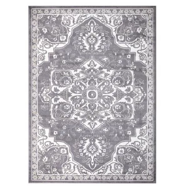 Complement your existing home decor with this fun and inexpensive area rug. Featuring stain-resistant fabrics. long-lasting materials for indoor use only. This design is tastefully made adding a touch of minimalist elegance with todays fashion trends. Boasting a light construction. this rectangular rug will mimic most home decor while maintain a clean look. Made from durable olefin yarn. this economy rug is made to last. FeaturesMade of 100 percent High-Density PolypropyleneFlame Retardant. Stain ResistantSpecificationsColor: GrayCollection: Vintage MedallionSize: 7 x 9 ft.Shape: RectangleConstruction: Machine-MadeWeave Type: LoomedRug Material: PolypropyleneCleaning Instruction: Spot cleanPattern: MedallionActual Area Rug Dimension: 6 ft. 7 in. x 9 ft. 3 in.