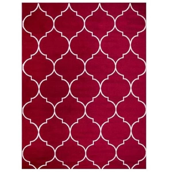 Complement your existing home decor with this fun and inexpensive area rug. Featuring stain-resistant fabrics. long-lasting materials for indoor use only. This design is tastefully made adding a touch of minimalist elegance with todays fashion trends. Boasting a light construction. this rectangular rug will mimic most home decor while maintain a clean look. Made from durable olefin yarn. this economy rug is made to last. FeaturesMade of 100 percent High-Density PolypropyleneFlame Retardant. Stain ResistantSpecificationsColor: RedCollection: Morocco TrellisSize: 8 x 10 ft.Shape: RectangleConstruction: Machine-MadeWeave Type: LoomedRug Material: PolypropyleneCleaning Instruction: Spot cleanPattern: TrellisActual Area Rug Dimension: 7 ft. 10 in. x 9 ft. 10 in.