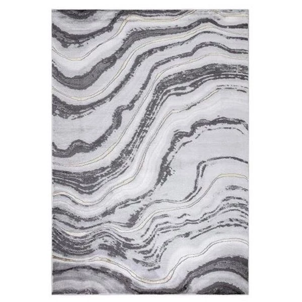This area rug has stain-resistant fabrics and long-lasting materials. remaining in great shape over time. The designs boast a popular marble look and feature a high and low textured pile. There are accent shiny yarns incorporated within the designs in either gold or silver which add further glamor to this assortment. This rug adds pleasant and refined appearance of your room or office for an understated touch of elegance. It is extremely durable and will hold up the heavy traffic;; for a longer lifespan. a rug pad is recommended. FeaturesMade from 40 percent High-Density Polypropylene and 60 percent Soft Polyester YarnsFlame Retardant. Stain ResistantSpecificationsColor: GrayCollection: MarbleSize: 5 x 7 ft.Shape: RectangleConstruction: Machine-MadeWeave Type: LoomedRug Material: PolypropyleneCleaning Instruction: Spot cleanPattern: AbstractActual Area Rug Dimension: 5 ft. 3 in. x 7 ft. 3 in.