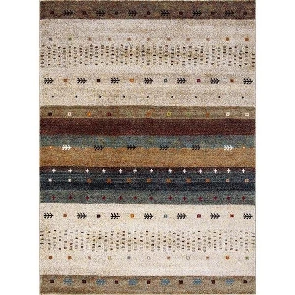 A soft. high pile featuring a double twisted freese yarn. This Gabbeh design is a stripe blend with transitional accents adding decor to any home or office. FeaturesEasy maintenance and ultimate performanceColorfast for long-lasting beautyStain-resistant and soil repellentResilient. Ecological and Anti StaticAnti BacterialNon FlammableNo Dust FibersSpecificationsColor: BeigeStyle: TransitionalMaterial: Polypropylene/OlefinCollection: DiamondDesign: GabbehShape: RectangleWeight: 23 lbsTechnique: WovenDimension: 5'3" L x 7'3" L