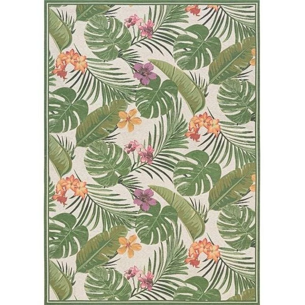 Create a special spot that becomes the heart of the home with the refreshing appeal of the Dolce Collection. Designed to withstand the outdoor elements. yet stylish enough to be used in indoor settings. Dolce features a variety of patterns ranging from sophisticated traditional motifs to bold florals. Dolce fashions have a unique aesthetic that varies from subtle and simple to vibrant and intricate. Woven of 100% fiber-enhanced Courtron polypropylene with polyester accents. this dynamic collection is mold and mildew resistant to provide long-lasting performance in open-air living spaces where water and moisture are prevalent. Finished with a UV stabilization process. each of the colors used in Dolce are locked-in to retain their rich liveliness in spite of regular exposure to sun and other weather elements. The structured tapestry construction of this collection adds to the durability and versatility that makes these fashionable area rugs a great choice for treasured living areas both inside and outside the home. Features100% fiber-enhanced courtron polypropylene with durable polyesterFeaturing a structured tapestry constructionSuitable for outdoor/indoor useUV stabilized. water.mold/mildew resistantPower loomedSpecificationsCollection: DolceColor: Ivory & Hunter GreenPattern: Flowering FernMaterial: Polypropylene & PolyesterShape: RectangleCountry of Origin: BelgiumSize: 5' 3" x 7' 6"Weight: 9 lbs