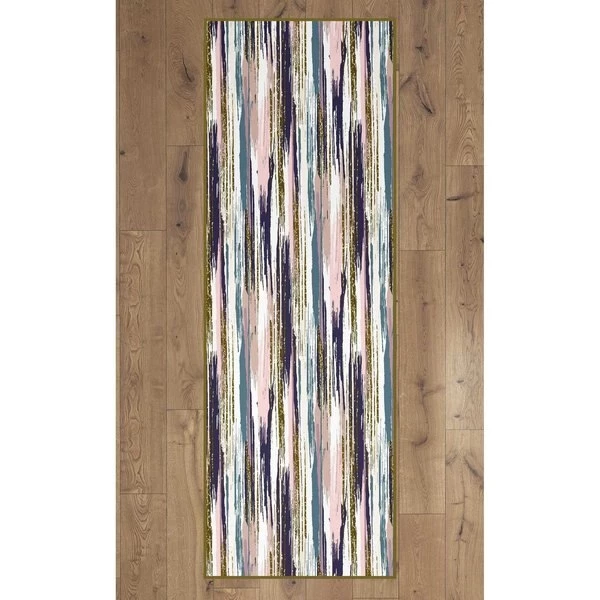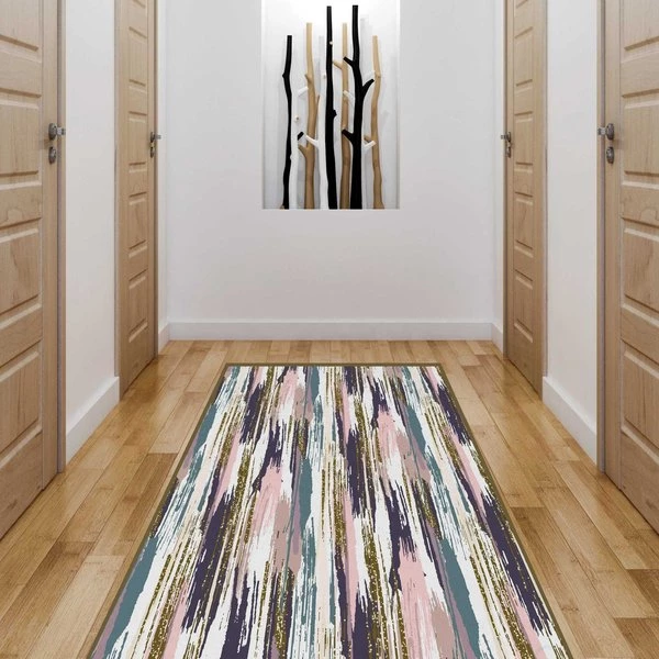 Art does not have to be displayed exclusively on walls. Let your floors show off some flair too! Add a dash of contemporary style to your home décor with this beautiful Abstract Brushstrokes and Glitter area rug. Shades of pink, purple, turquoise and beige blend together for a striking effect, and small specks of brown create a glittery appearance. Machine tufted with durable synthetic fibers, it has a soft and comfortable texture, does not shed, and is easy to clean. Its low .25” pile makes it ideal for high traffic areas of your home and will not obstruct doorways. A slip resistant latex backing keeps the area rug safely in place. Whether you display it in your living room, bedroom, home office, dining room, foyer, or nursery, it’ll bring your home décor to the next level.