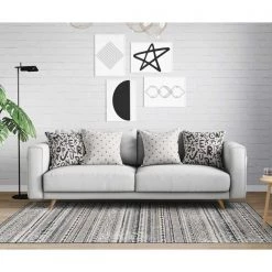 Art does not have to be displayed exclusively on walls. Let your floors show off some flair too! Add some boho chic to your home décor with this Tribal Print area rug. Featuring a Bohemian pattern with a slightly distressed finish against a neutral ivory background, it will stand out in any space. Machine tufted with durable synthetic fibers, it has a soft and comfortable texture, does not shed, and is easy to clean. Its low .25” pile makes it ideal for high traffic areas of your home and will not obstruct doorways. A slip resistant latex backing keeps the area rug safely in place. Whether you display it in your living room, bedroom, home office, dining room, foyer, or nursery, it’ll bring your home décor to the next level.
