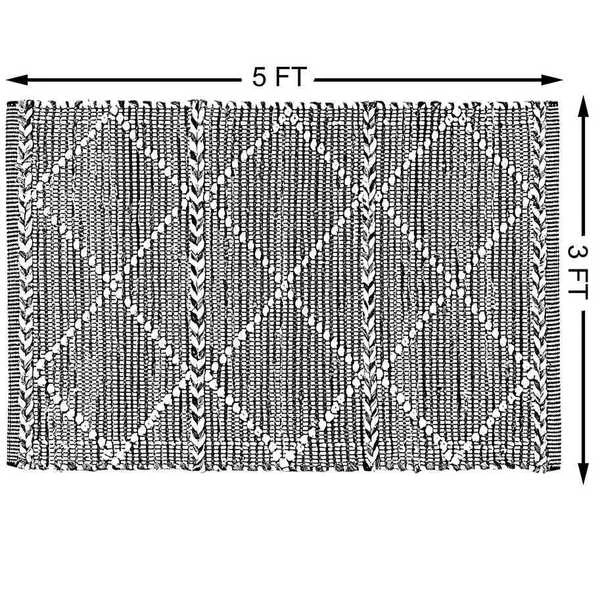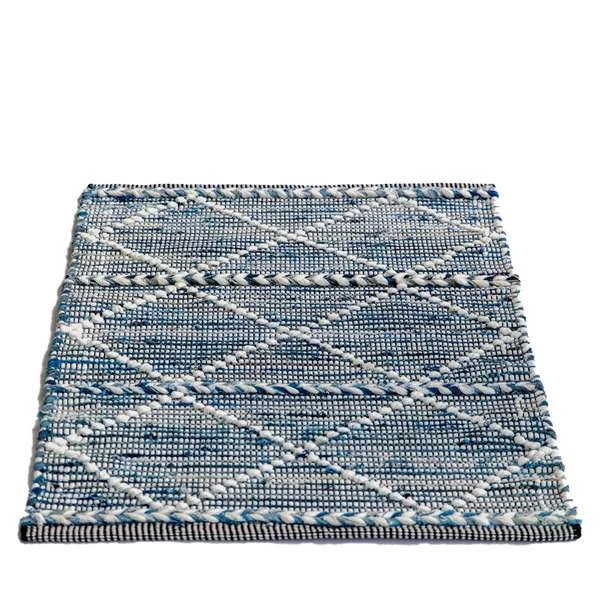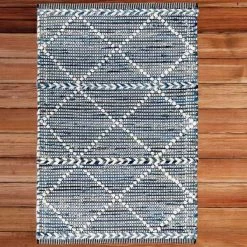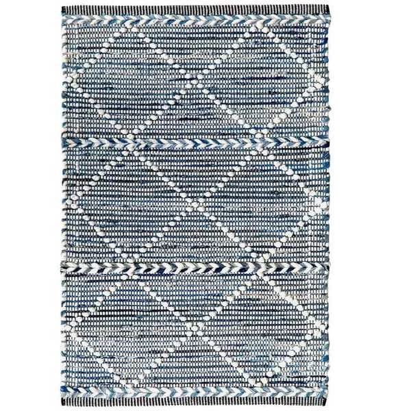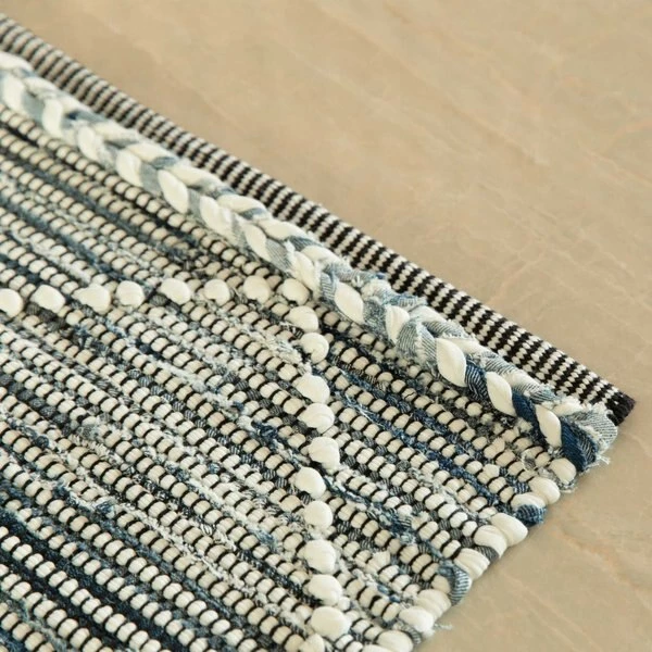 Layer up cozy boho style on your floor with a Deerlux Handwoven Kilim Rug. Kilim rugs are pileless, flatwoven rugs that are durable, lightweight, and reversible. Handwoven by skilled artisans, the rug is composed of a cotton and polyester blend for a breathable surface that's suitable for all year round. Its low height is easy to clean and move around, and is perfect for high traffic zones such as kitchens, hallways, and entryways. The rug features a unique composition of cotton wefts interlaced with recycled denim fibers for a textural contrast of rough denim and soft cotton tufts arranged in a geometric diamond pattern.