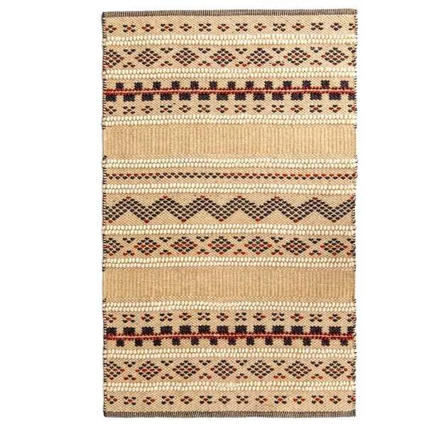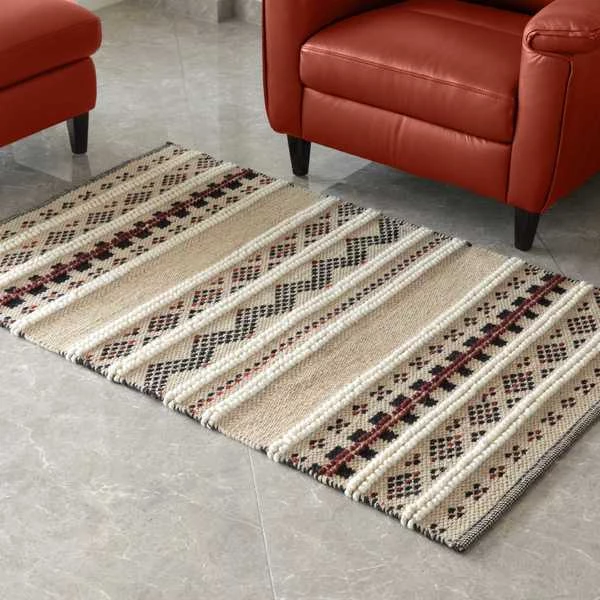 Layer up cozy boho style on your floor with a Deerlux Handwoven Kilim Rug. Kilim rugs are pileless, flatwoven rugs that are durable, lightweight, and reversible. Handwoven by skilled artisans, the rug is composed of 100% New Zealand wool for a breathable surface that's suitable for all year round. Its low height is easy to clean and move around, and is perfect for high traffic zones such as kitchens, hallways, and entryways. The rug design features geometric patterns of black, red, and orange, contrasted by soft tufted bobbles of beige.