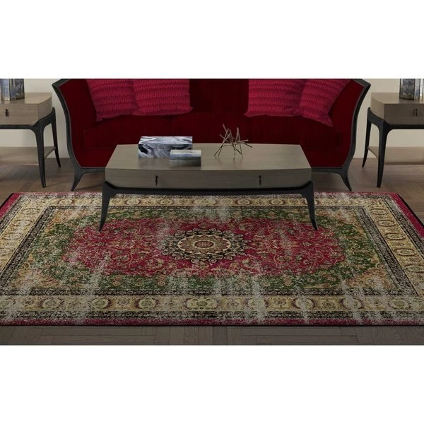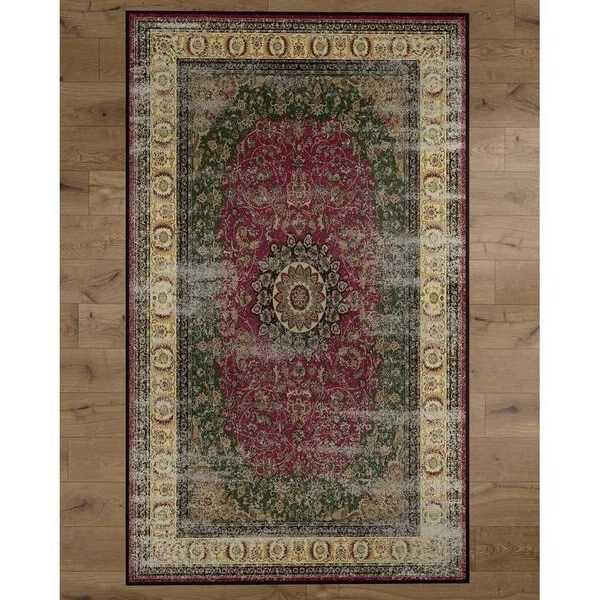 Art does not have to be displayed exclusively on walls. Let your floors show off some flair too! Add a dash of traditional style to your home décor with this beautiful Classic Pink area rug. Featuring a classic Oriental Persian style medallion in hints of green, black, and beige set against a magenta pink background, its nuetral color scheme will fit in with any décor theme. Machine tufted with durable synthetic fibers, it has a soft and comfortable texture, does not shed, and is easy to clean. Its low .25” pile makes it ideal for high traffic areas of your home and will not obstruct doorways. A slip resistant latex backing keeps the area rug safely in place. Whether you display it in your living room, bedroom, home office, dining room, foyer, or nursery, it’ll bring your home décor to the next level.