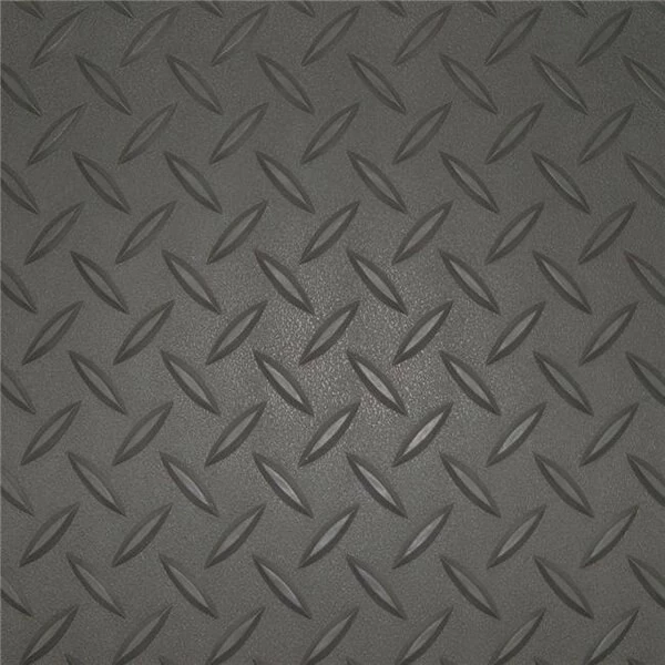 Diamond Deck roll out flooring protects your floor. while giving it that stylish rugged look. Simply roll out and you're done. Can be easily cut to any size. with a utility knife or scissors. Use as a parking pad or cover the entire garage floor. Resists oil. gasoline. brake fluid and antifreeze. Diamond Deck is unaffected by battery acid. making it the ideal golf cart mat. Great for workshops. basements. trailers. laundry rooms. mud rooms. bathrooms. motorhomes and camping. Perfect whether you need a temporary or a permanent flooring solution. that is tough. waterproof. durable and easy to install. FeaturesCommercial & Industrial GradeOverall thickness measures 2.9 mm of solid PVCSlip Resistant SurfaceQuick. Easy and WaterproofUnaffected by Battery AcidNo Installation Required – Just Roll OutCan be cut to size with scissors or utility knife7 Year Limited WarrantySpecificationsColor: Charcoal TextureSize: 5 x 7.5 ft.Weight: 23 lbs