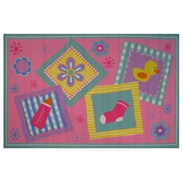 Decorating a house is a passion pursued by many. Our home decor products will add a better durability. stability and high standard for all the products. Our products will be the best fit for residential purpose. We strive to provide the user with the best selection and help to enjoy the fun and secure shopping with us.FeaturesSoft pastel colors. baby bottle. rubber ducky. sock and flower. twinkles all around will make for a bright. calm. and homely nurseryLatex backing that helps keep the rug from shifting and slippingSpot clean with mild soap and cold waterDurable enough for the roughest and toughest of childrenSpecificationsColor: PinkMaterial: NylonSize: 39 x 58 in.