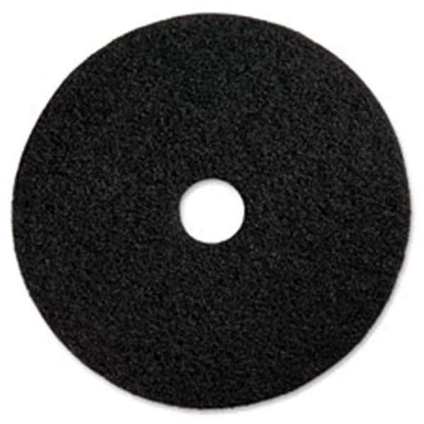 Heavy-duty floor stripping pad works with your stripping solution and floor machine agitation to remove all finish from floors. Open web design allows dirt to enter the fiber and resist soil load on the face of the pad for maximum use. Resiliency allows pad to remain flexible to reach depressions. Heavier denier fibers mean longer-lasting pads. Harder resin is abrasive for aggressive stripping action. Floor pad is designed for use at speeds between 175 to 350 RPM in rotary/automatic scrubbers. SpecificationsColor: BlackWeight: 0.125