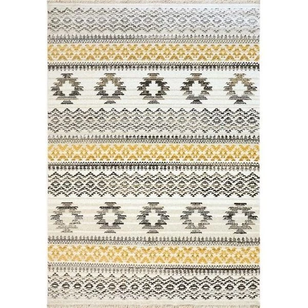 Avery consists of tasteful southwestern geometric patterns with an elegant twist of a Boho aesthetic. Not only are the Avery rugs invitingly smooth. but the beautiful ribbed texture creates for a high-low that's hard to resist to touch. With light creams as a backdrop. the setting is ideal for the beiges. golds. browns. and blacks of the design-work to create a modern motif. Despite the delicacy of their smooth feel. Avery rugs are durable. shed-free. and overall easy to maintain. SpecificationsColor: 197 Ivory Grey & GoldSize: 2 ft. 7 in. x 5 ft.Collection: AveryDesign: 6546Fiber: 100% Heatset Frise PolypropyleneWeight: 5 lbs