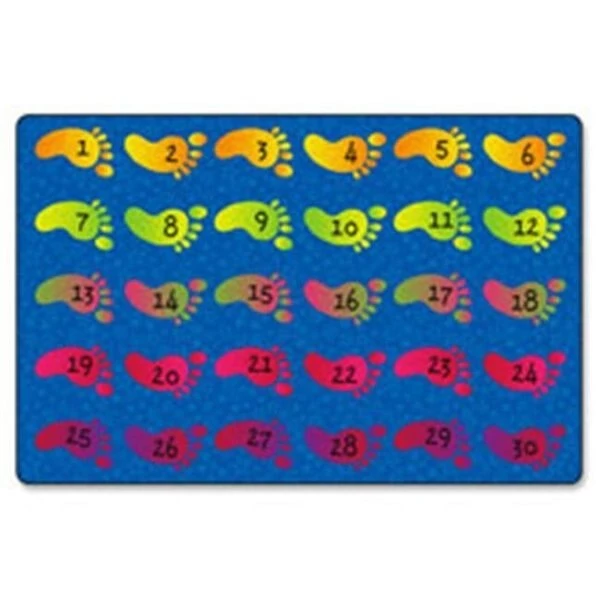 Help young learners get a kick out of counting with this colorful rug. Bright feet are printed with numbers ranging from 1 to 30 to intrigue students' minds while counting. Robust construction allows multiple display options to use on the floor or on the wall as a visual aid. Skid-resistant backing prevents the rug from sliding on smooth surfaces for increased safety. High-quality print is manufactured at 625 dpi for crisp. detailed images with excellent definition and clarity. Highly durable design is bound and double-stitched with nylon edge yarn for reliable strength and sturdiness. Antimicrobial treatment helps you maintain a germ-free environment by guarding against odor. mildew and mold. Scotchgard Protector resists heavy soils to quickly clean the rug in the event of an accident. SpecificationsDimension: 60 L x 36 W in. Weight: 0.6875