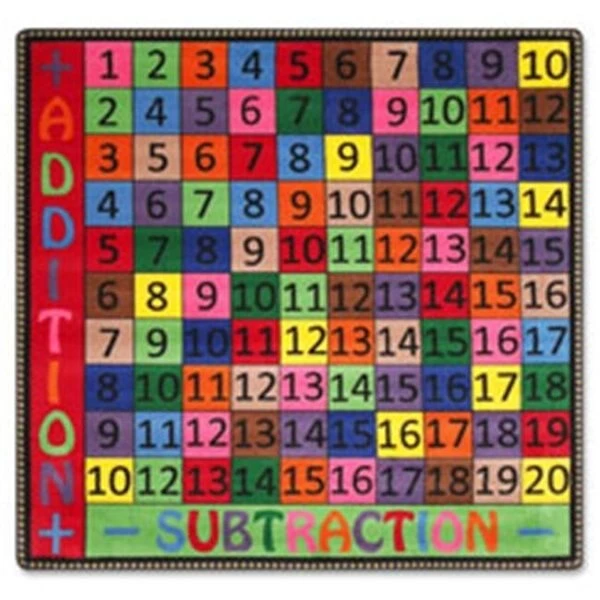 Teach your children to add and subtract with this resourceful rug. Multicolored columns make it easy to follow and discover patterns. High-quality print is manufactured at 625 dpi for crisp. detailed images with excellent definition and clarity. Highly durable design is bound and double-stitched with nylon edge yarn for reliable strength and sturdiness. Antimicrobial treatment helps you maintain a germ-free environment by guarding against odor. mildew and mold. Scotchgard Protector resists heavy soils to quickly clean the rug in the event of an accident. SpecificationsWeight: 0.5