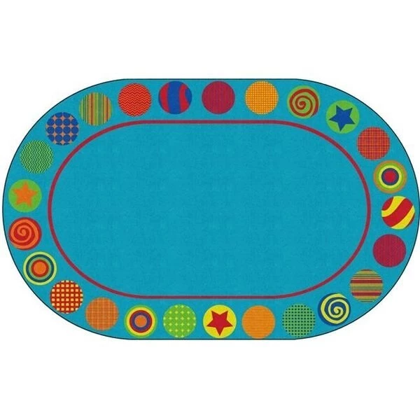 The Flagship Carpets Patterned Circles Primary rug is the perfect gathering place for show-and-tell and other group activities that provides enough seating for 24 kids. We offer state of the art digital print technology providing the education industries only 76 dpi (dots per square inch) high definition dye infusion technology with over 13.000 possible colors. the most innovative and flexible carpet printing machinery in the world. All Flagship Carpets are CRI Green Label Plus certified and meet or exceed California indoor air quality standards for low emitting products used in schools FeaturesMade 100% in the USAScotchgard-protector for superior soil resistance and stain protection100% Invista type 6.6. Continuous Filament NylonFORCE 5. a permanent anti-microbial agent to guard against odor. mildew and moldBound and double stitched serge with nylon edge yarn for maximum strength and durabilityUseful life wear warrantySpecificationsSize: 7' 6 x 12'Seats: 24Shape: Oval