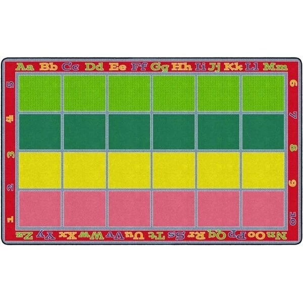 Sitting Grid Classroom Rug Bright is a cheerful rug that proves less is so much MORE!! Rows of colored seating for your classroom group activities offers a place for every student to sit and organizes the class into groups by color for the teacher. Educational ABC's and 123's border reinforces the school lessons the children are working on. This classroom rug is cheerful. fun and practical for children and teacher. We offer state of the art digital print technology providing the education industries only 76 dpi (dots per square inch) high definition dye infusion technology with over 13.000 possible colors. the most innovative and flexible carpet printing machinery in the world. All Flagship Carpets are CRI Green Label Plus certified and meet or exceed California indoor air quality standards for low emitting products used in schools FeaturesMade 100% in the USAScotchgard-protector for superior soil resistance and stain protection100% Invista type 6.6. Continuous Filament NylonFORCE 5. a permanent anti-microbial agent to guard against odor. mildew and moldBound and double stitched serge with nylon edge yarn for maximum strength and durabilityUseful life wear warrantySpecificationsSize: 7' 6" x 12'Seats: 24Shape: Rectangle