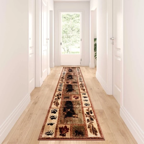 Flash Furniture 2' x 11' Brown Mother Bear & Cubs Olefin Area Rug