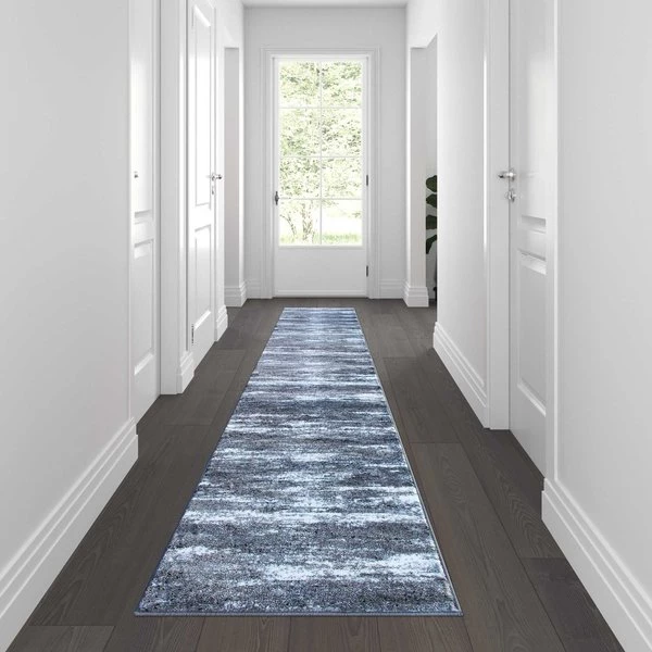 Soften the look of any room while adding on-trend style with the distressed look of this indoor area rug. Contemporary area rugs offer a versatility that allows you to add warmth to hardwood floors, color in multiple spaces, and protects flooring in high-traffic areas. This stylish area rug can be a warm place for your feet by the bed, in front of your couch, or in entryways. Durability is essential when investing in floor coverings and this modern area rug won't disappoint. Made from olefin fibers, this cutting edge area rug is stain and water resistant, colorfast, and provides a soft underfoot feel friendly to kids and pets. The jute backing gives this rug structural integrity and helps promote air flow. Vacuum regularly without the beater bar and spot clean with water and a mild detergent to maintain the look of your new rug.
