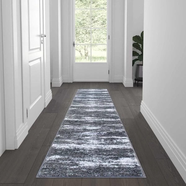 Soften the look of any room while adding on-trend style with the distressed look of this indoor area rug. Contemporary area rugs offer a versatility that allows you to add warmth to hardwood floors, color in multiple spaces, and protects flooring in high-traffic areas. This stylish area rug can be a warm place for your feet by the bed, in front of your couch, or in entryways. Durability is essential when investing in floor coverings and this modern area rug won't disappoint. Made from olefin fibers, this cutting edge area rug is stain and water resistant, colorfast, and provides a soft underfoot feel friendly to kids and pets. The jute backing gives this rug structural integrity and helps promote air flow. Vacuum regularly without the beater bar and spot clean with water and a mild detergent to maintain the look of your new rug.