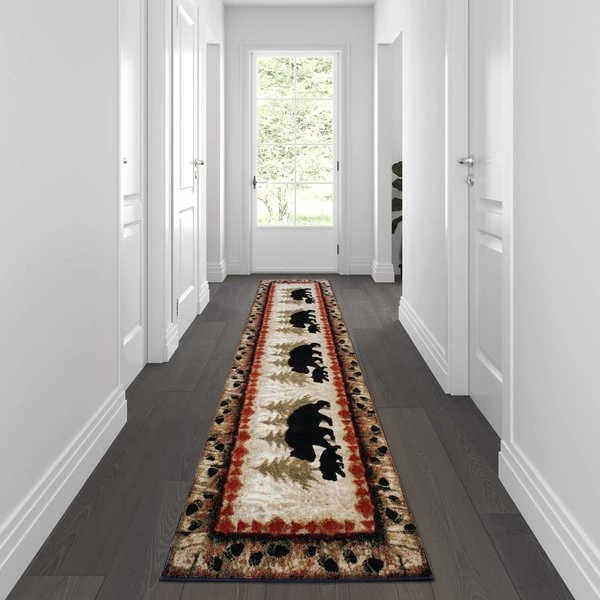 Flash Furniture 3' x 10' Brown Rustic Bear and Cub Olefin Area Rug