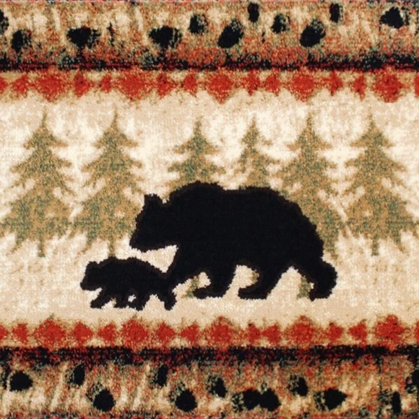 Charm abounds in this nature inspired bear and cub area rug that's just as at home in your living room as it is in your vacation cabin. Whether you're an avid outdoors person or just love wildlife, this adorable area rug is just what you need. Available in multiple sizes, you're sure to find the perfect fit for your space. Not only is this accent rug cute as can be, it's also made to last. Made from stain-resistant olefin fibers with a jute backing, this rug has an impressively soft underfoot tactile sensation. This multipurpose area rug is colorfast, water repellent, lays flat and does not shed so it works great in high traffic areas. This olefin rug ships rolled and covered in plastic sheeting and can be easily transported to the room of your choice. Vacuum regularly with no beater bar and spot clean if needed using a diluted solution of clear, mild detergent and water.