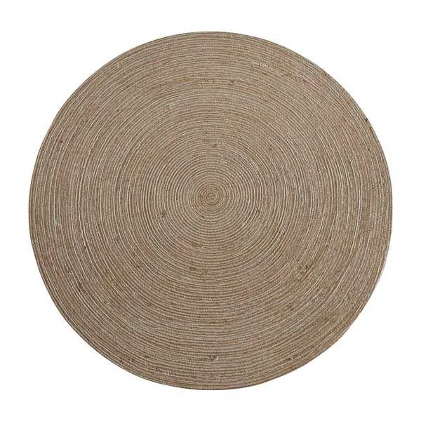 Add texture and depth to your living space at an affordable price with this round natural color indoor jute and polyester blend area rug. The neutral tone won't compete with different patterns and will blend seamlessly in every decor from farmhouse to coastal making it a definite go-to for your design aesthetic. The round design will add a fresh look to any space. If you think a jute rug can't provide a comfortable level of softness, this round area rug is a game changer. A braided design paired with the blending of jute and soft polyester fibers will give a plush underfoot feel. The hypoallergenic properties of this round area rug will inhibit the growth of allergens. Jute fibers are extremely strong and tough giving this natural area rug the durability to hold up to high traffic areas. Simply shake or vacuum your jute area rug to remove dirt. To vacuum, use the bare floor setting with no beater bar or use a suction or brush attachment from multiple directions for a thorough cleaning. For longevity, care should be taken to limit exposure to moisture.