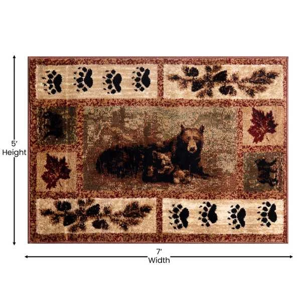 Flash Furniture 5' x 7' Brown Mother Bear & Cubs Olefin Area Rug
