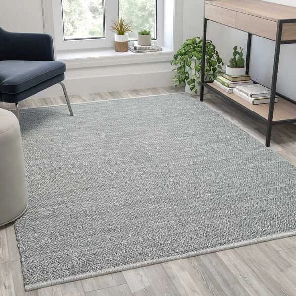 Make a statement with this indoor/outdoor 5' x 7' geometric area rug that offers a quick and dramatic change. This patterned grey area rug is a cost effective way to effortlessly transform the look and feel of any living space whether it's your living room, patio or poolside. If your indoor flooring has flaws that you don't want visitors to notice or tends to get cold when the temperature drops, an area rug will lend instant style while hiding an eyesore as well as keeping your feet warm. This outdoor rug will accentuate your deck furniture to create an outdoor living area instead of just a place to store the grill. Long lasting comfort paired with a budget-friendly price point make this area rug ideal for busy families. Made from lightweight but highly durable polypropylene, this rug is fade and stretch resistant and won't grow mold or mildew to retain its great looks. Highly affordable and free of allergens, this microfiber area rug will help both you and your wallet breathe easier. Nobody has time for high-maintenance items so stain resistance and ease of cleaning make this beautiful area rug a must have. Dirt is quickly vacuumed away while water-based spills can be blotted with a dry cloth. Ideal for all living areas, including outdoors, this versatile area rug will be an asset to any decor.