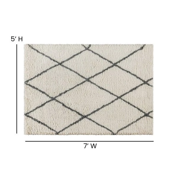 Flash Furniture 5'x7' Ivory/Black Diamond Trellis Shag Area Rug