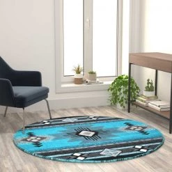 Flash Furniture 5×5 Turquoise Rustic Southwest Style Area Rug