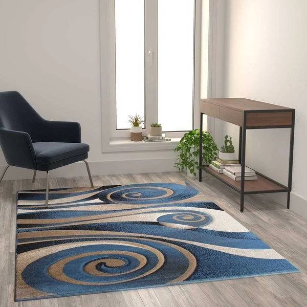 Flash Furniture 5×7 Blue and Beige Swirled Pattern Area Rug