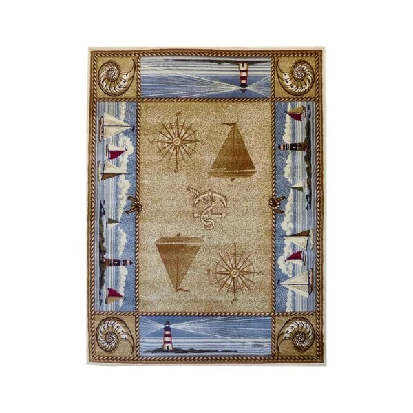 Flash Furniture Beige 3×5 Nautical Themed Olefin Indoor Area Rug
