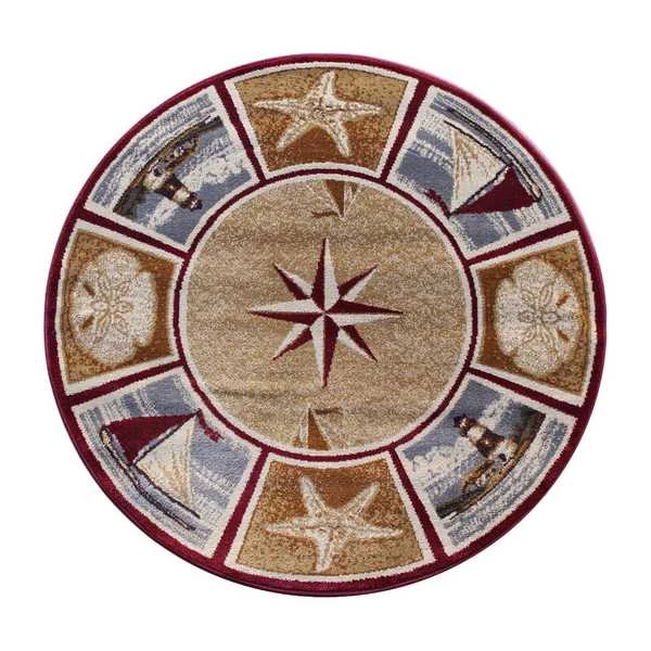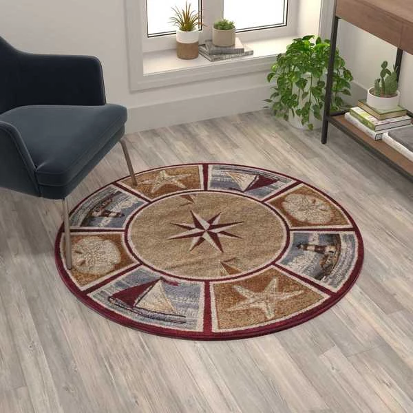 Flash Furniture Beige 4×4 Round Nautical Olefin Indoor Area Rug