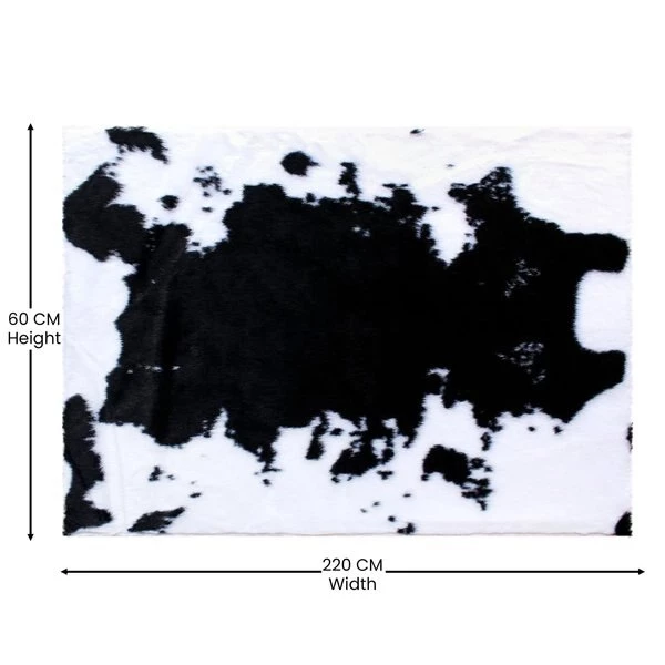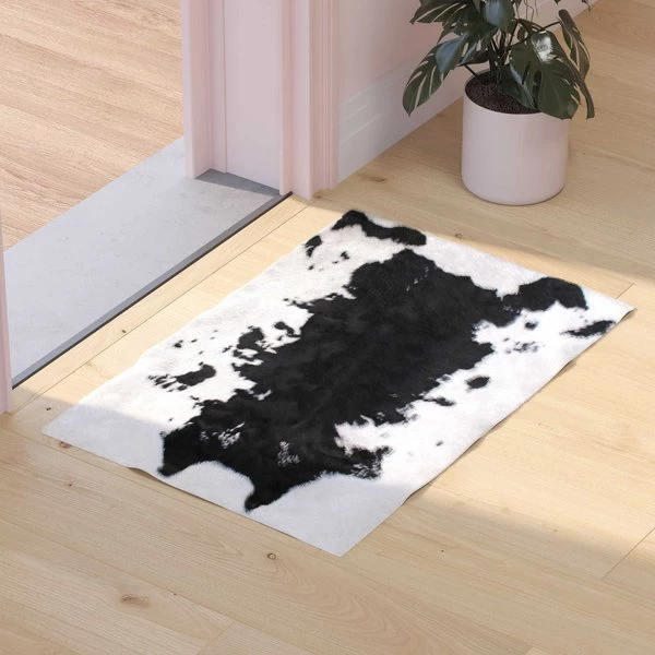 Add some old west flair to your home with the popular look of this faux cowhide print area rug. This modern area rug is completely synthetic making it a cost-effective and cruelty-free alternative to the real thing. Ultra-soft olefin fibers make this area rug an ideal choice for kids rooms, bedrooms, or living rooms. Both durable and versatile, this colorfast, non-shedding rug resists water and stains and is suitable for multiple flooring types. The eco-friendly jute backing provides structural integrity and promotes air flow. Vacuum regularly without the roller brush to maintain the looks of this cool rug. For heavily soiled areas or stains, professional dry cleaning is recommended.