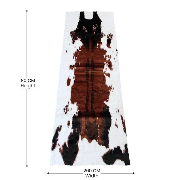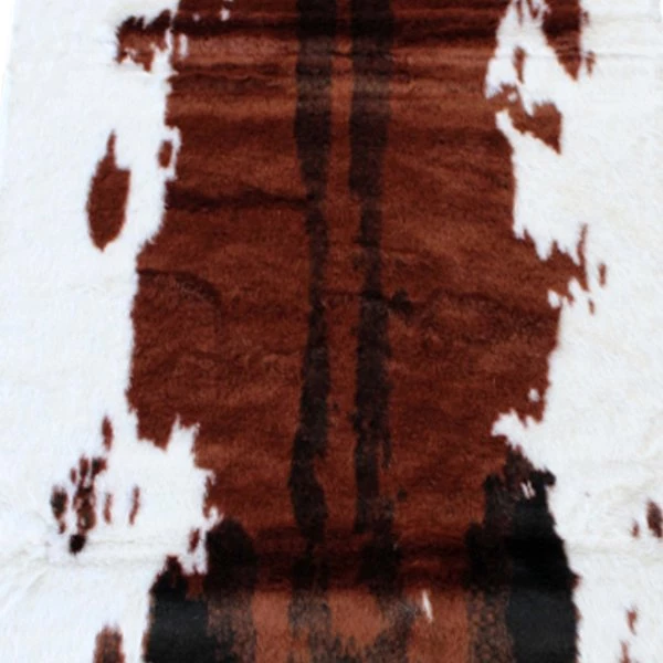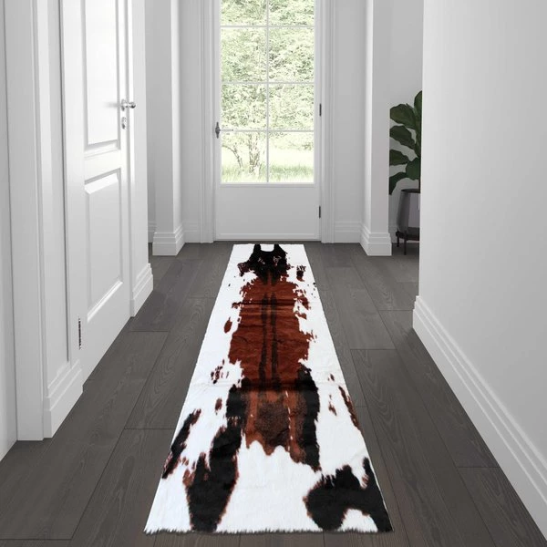 Add some old west flair to your home with the popular look of this faux cowhide print area rug. This modern area rug is completely synthetic making it a cost-effective and cruelty-free alternative to the real thing. Ultra-soft olefin fibers make this area rug an ideal choice for kids rooms, bedrooms, or living rooms. Both durable and versatile, this colorfast, non-shedding rug resists water and stains and is suitable for multiple flooring types. The eco-friendly jute backing provides structural integrity and promotes air flow. Vacuum regularly without the roller brush to maintain the looks of this cool rug. For heavily soiled areas or stains, professional dry cleaning is recommended.